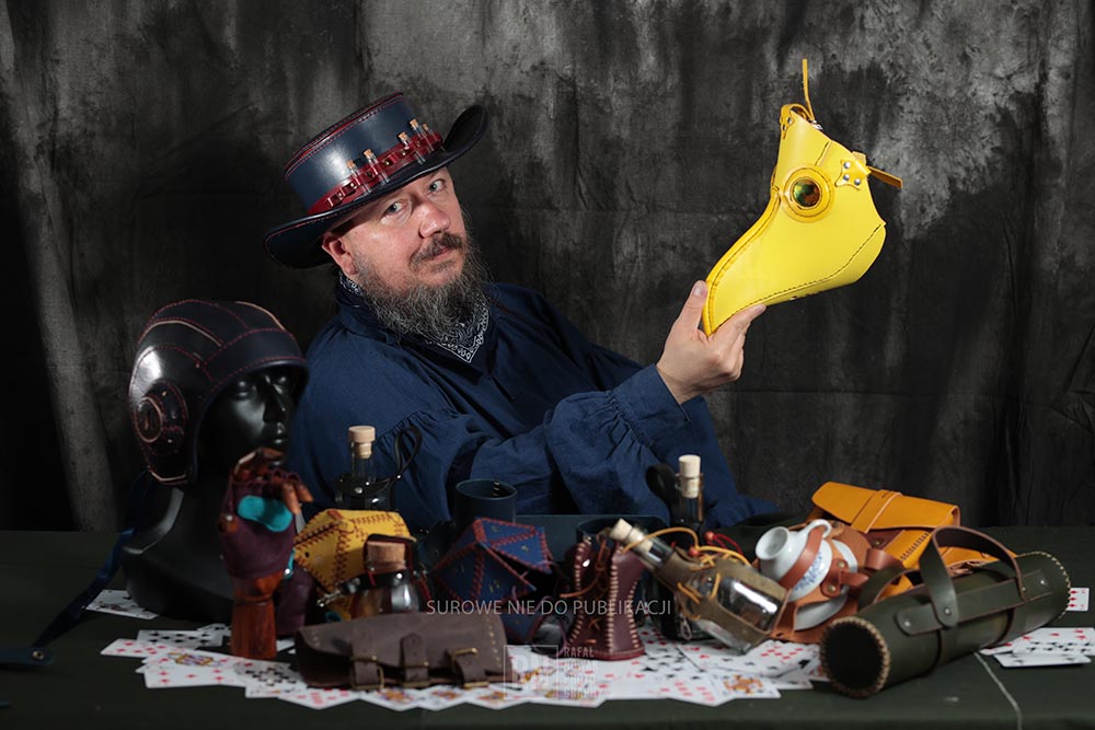 Kiedy dorosłem wydawało mi się, że moja pasją są w głównej mierze książki i historia. Ale moja wyobraźnia nie próżnowała i pchnęła mnie w objęcia mojej przeszłości. I w ten sposób zakochałem się w skórze. Wszystkie wcześniejsze młodzieńcze przygody znów zaczęły skrzypieć i chrzęścić, a czasem nawet pachnieć. Pochodzę z miasta, gdzie przemysł garbarski i skórzany stanowiły podstawę względnego dobrobytu mieszkańców. Geny bardzo szybko dały o sobie znać i ja też dałem się wciągnąć. A kiedy uszyłem pierwszy kapelusz, bardzo szybko zrozumiałem, że to właśnie jest sposób, by znów połączyć te dwa światy i znów poczuć się jak dziecko.